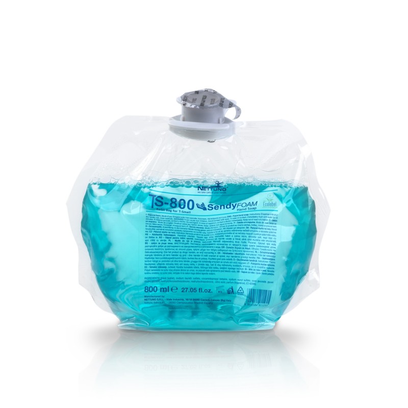 Jabón delicado en espuma y aroma floral. Para uso frecuente y suciedad ligera, Sendy Foam es idóneo para escuelas, oficinas y entornos comunitarios en general. Su fórmula certificada Ecolabel está enriquecida con nutrientes que previenen la sequedad y el enrojecimiento de la piel. Para utilizar en el dispensador T-Small de Nettuno.